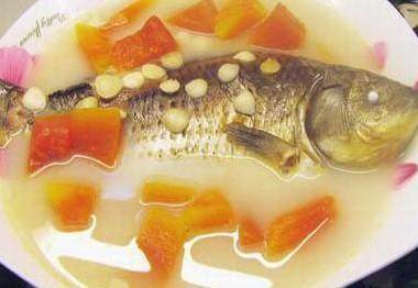制法:木瓜削皮切塊,鯇魚尾入油鑊煎片刻,加木瓜及生姜片少許,放適量水,共煮1小時左右。