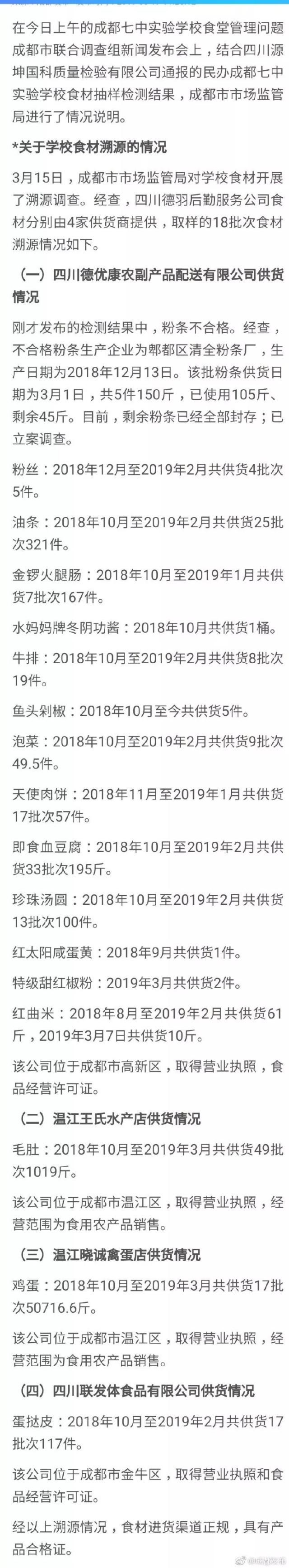 成都市市場監(jiān)管局:溯源情況顯示食材進貨渠道正規(guī)、具有產(chǎn)品合格證